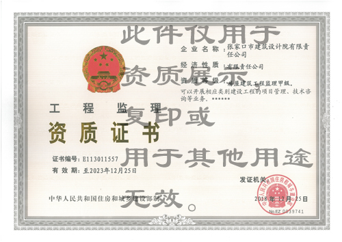 張家口市建筑設(shè)計(jì)院有限責(zé)任公司具有甲級(jí)工程設(shè)計(jì)資質(zhì)、甲級(jí)工程咨詢(xún)資質(zhì)、甲級(jí)工程監(jiān)理資質(zhì)、一類(lèi)建筑設(shè)計(jì)施工圖審查資質(zhì)、城鄉(xiāng)規(guī)劃編制資質(zhì)、乙級(jí)巖土工程勘察資質(zhì)、工程項(xiàng)目招標(biāo)代理及造價(jià)咨詢(xún)資質(zhì),能為業(yè)主提供工程建設(shè)領(lǐng)域全方位的服務(wù)。近年來(lái),我公司在河北省及周邊地區(qū)共完成大中型工程設(shè)計(jì)、咨詢(xún)項(xiàng)目近千余項(xiàng),其中48項(xiàng)獲得省部級(jí)及行業(yè)協(xié)會(huì)頒發(fā)的優(yōu)秀勘察設(shè)計(jì)、優(yōu)秀咨詢(xún)成果等獎(jiǎng)勵(lì),取得了豐碩的工程業(yè)績(jī)。